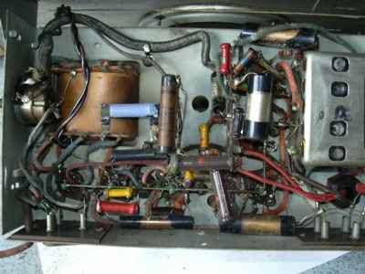 General view of inside prior to cleaning. Wave change and tuning achieved with one knob on the left and volume on/off control on the right